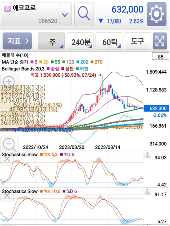 2024년 2차전지 관련주인 에코프로의 반등점을 찾아보자